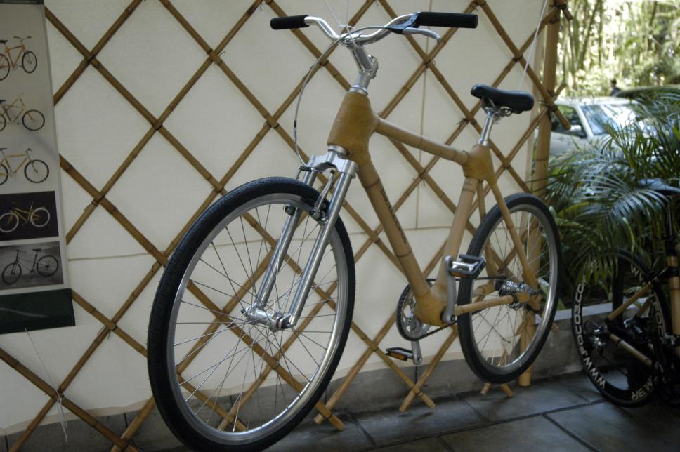 Bicicleta feita com bambu na Exposição de Estruturas de Bambu.