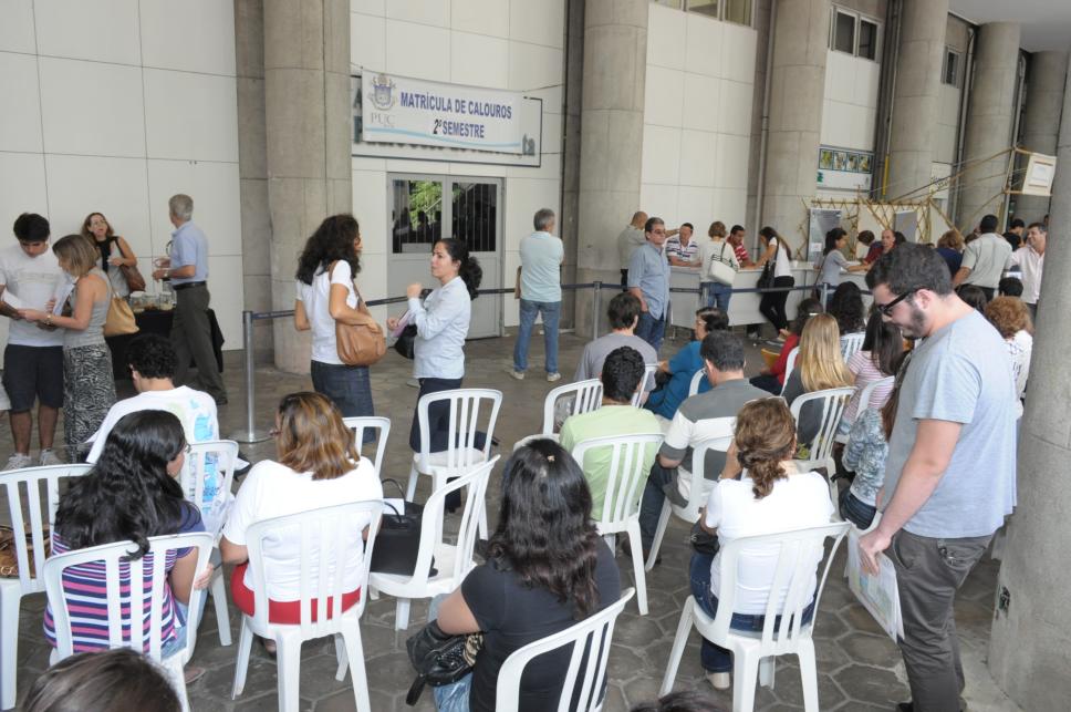 Alunos aguardam nos pilotis.