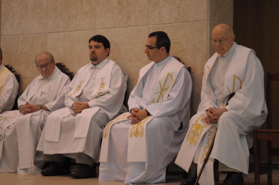 Padres presentes à missa, no altar.