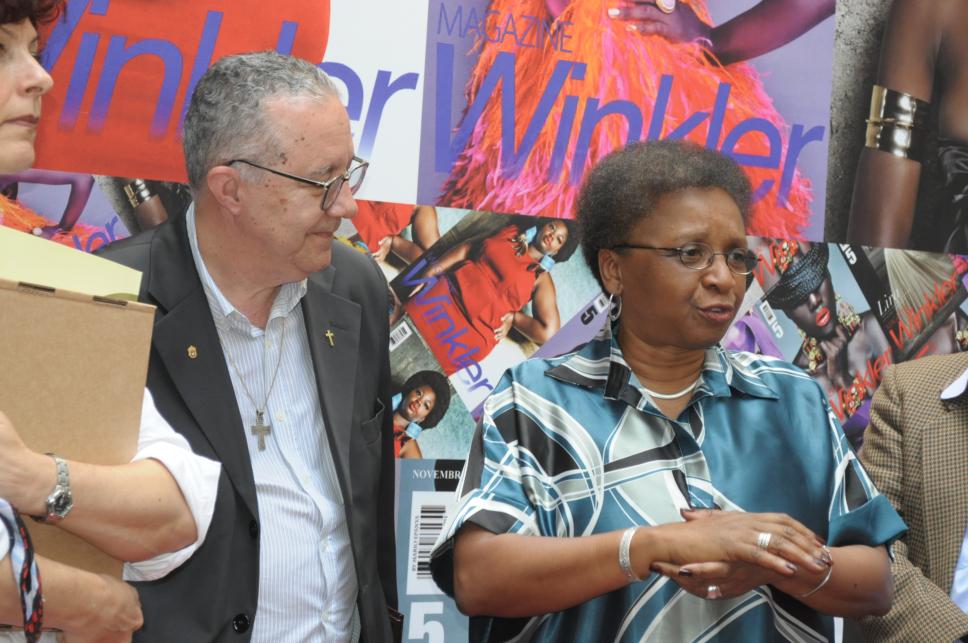 Luiza Bairros discursa na abertura do evento ao lado do Reitor pe. Josafá Carlos de Siqueira S.J.