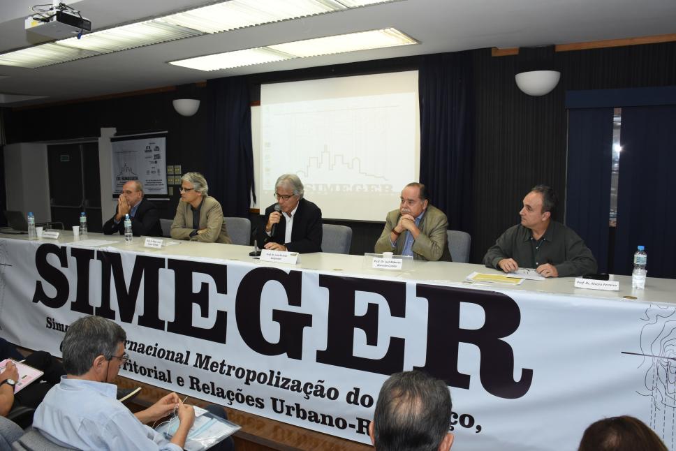 Mesa de convidados da 3ª Edição do Simpósio Internacional sobre Metropolização do Espaço.