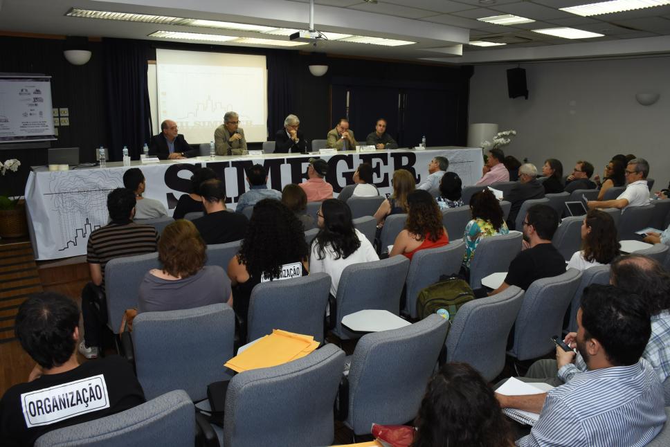 Na mesa da esq. para dir.: prof. Rogério Ribeiro de Oliveira (GEO), prof. Paulo César Duque Estrada (FIL,CCPG), prof. José Ricardo Bergmann (CETUC, Vice-Reitor para Assuntos Acadêmicos), prof. Luiz Roberto Azevedo Cunha (ECO, Decano CCS), prof. Álvaro Henrique de Souza Ferreira (GEO)