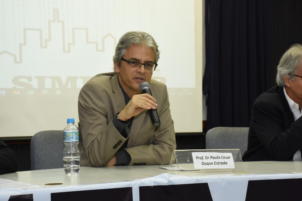 O prof. Paulo César Duque Estrada participa da mesa de abertura do simpósio.