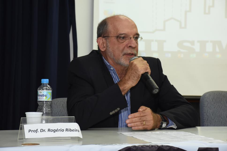 O prof. Rogério Ribeiro de Oliveira participa da mesa de abertura do simpósio.
