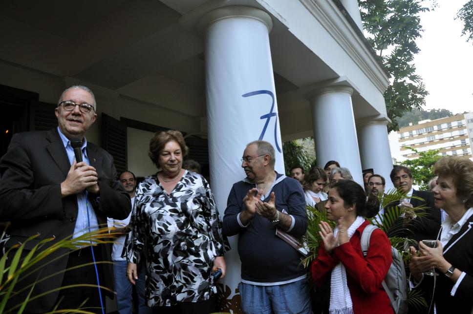 reitor pe. Josafá Carlos de Siqueira, S.J., profa. Margarida de Souza Neves (Núcleo de Memória da PUC-Rio).