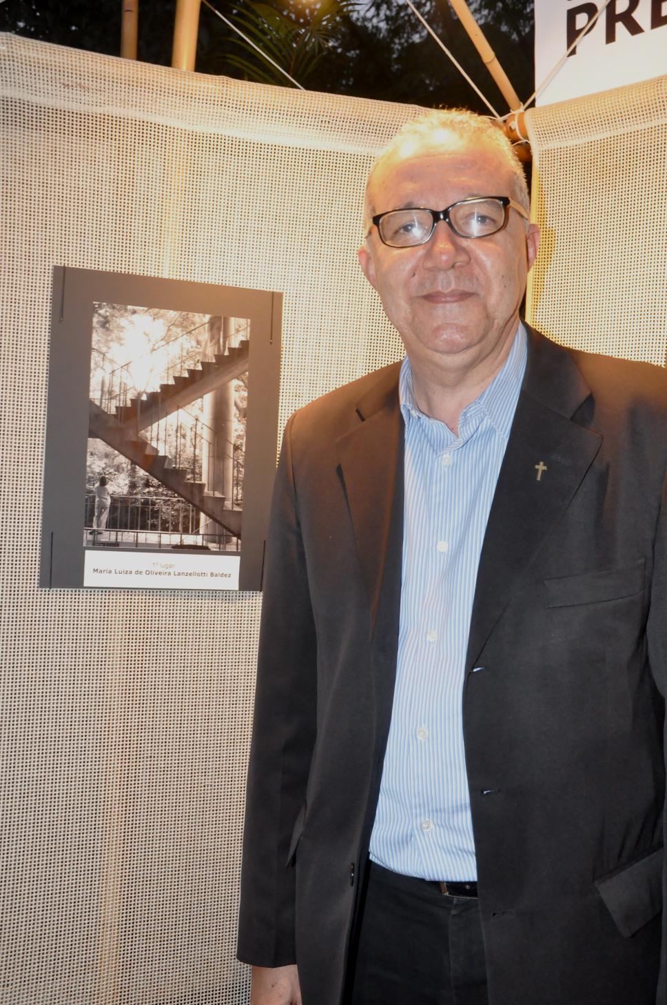O reitor pe. Josafá Carlos de Siqueira S.J. na Exposição PUC-Rio 70 anos, Rumo aos 80.