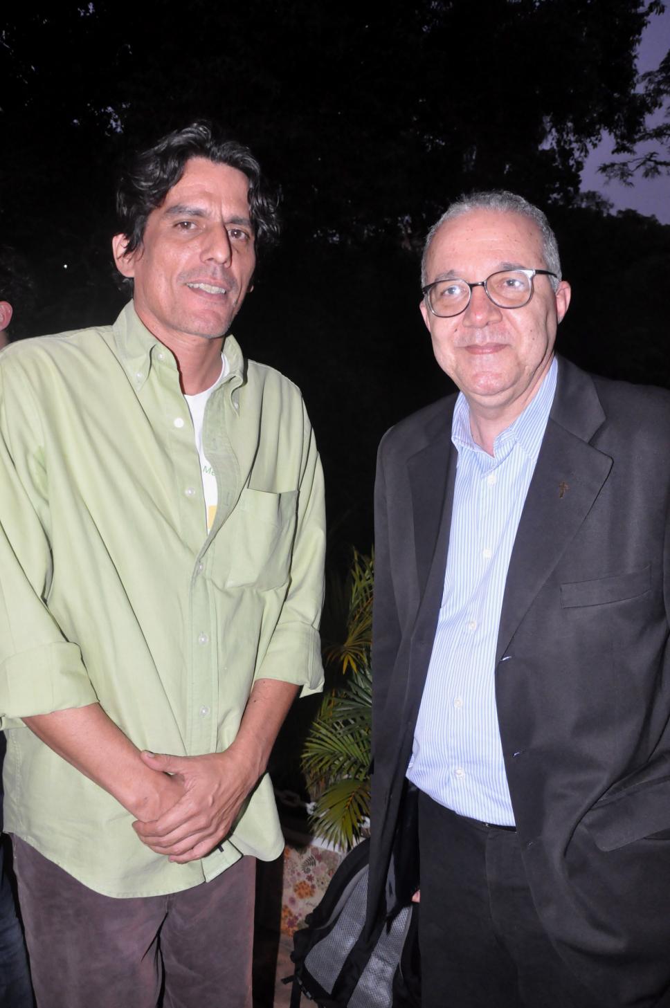 Prof. Luiz Felipe Guanaes Rego e o reitor pe. Josafá Carlos de Siqueira S.J., na Exposição PUC-Rio 70 anos, Rumo aos 80.