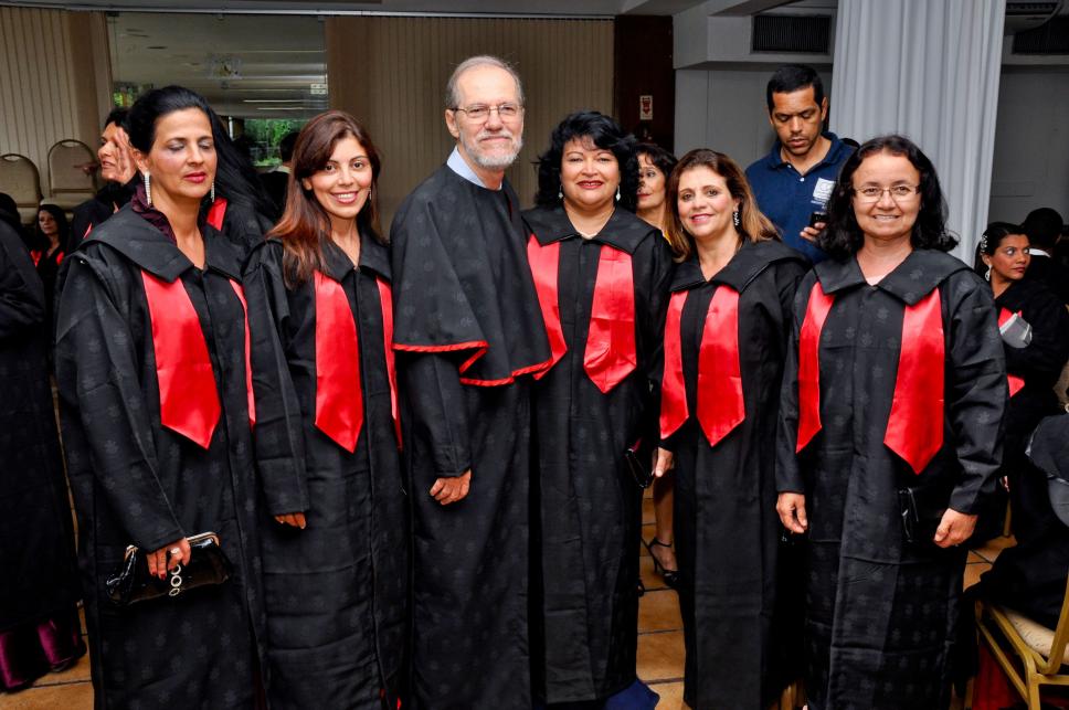 Prof. Ilmar e formandas na festa de formatura do curso de licenciatura em História à distância.