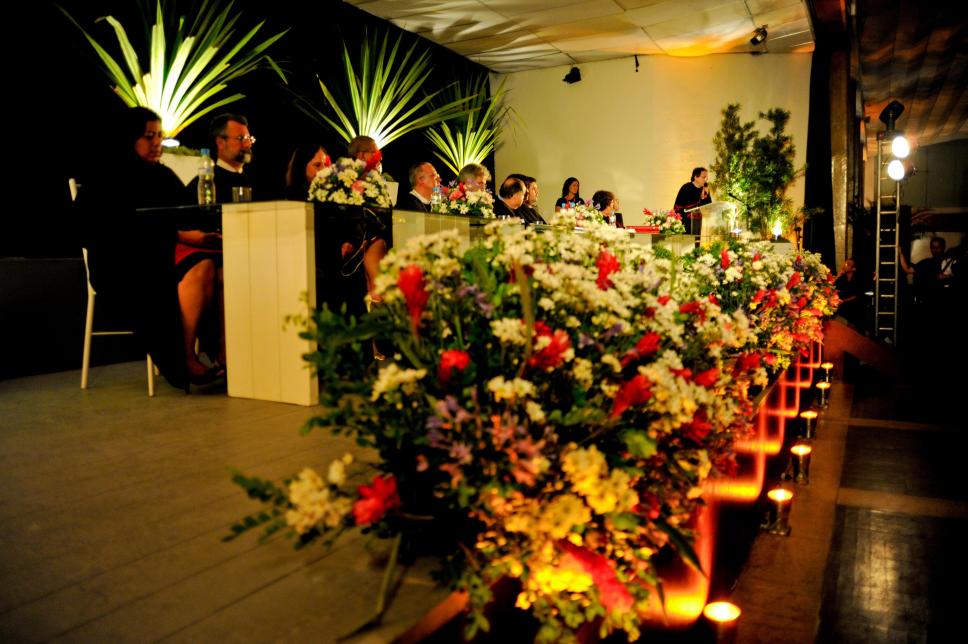 da esq. para dir.: 2º - prof. Paulo Fernando Carneiro de Andrade (decanato CTCH), 5º - reitor pe. Josafá Carlos de Siqueira, S.J., 6º - vice-reitor prof. José Ricardo Bergmann (VRAC), 11º - prof. Ilmar Rohloff de Mattos (HIS), no púlpito - prof. Luís Reznik (HIS)