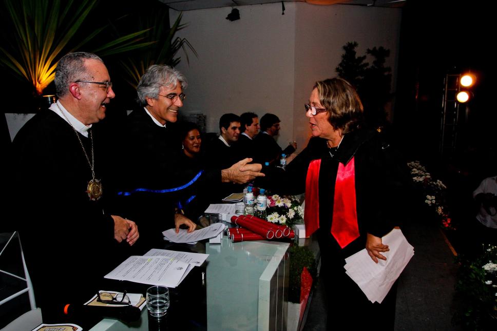 reitor pe. Josafá Carlos de Siqueira, S.J., prof. José Ricardo Bergmann (VRAC), prof. Luís Reznik (HIS)