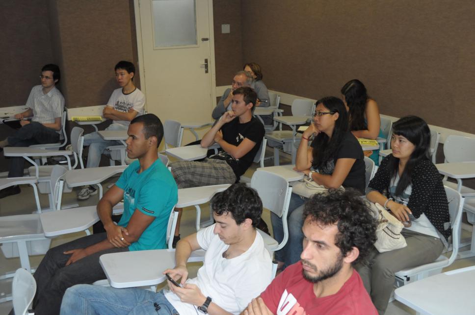 Alunos assistindo à palestra ''Desmistificando a entrada chinesa no Brasil'', ministrada pela pesquisadora Dawn Elisabeth Powell, da Comissão Fullbright.