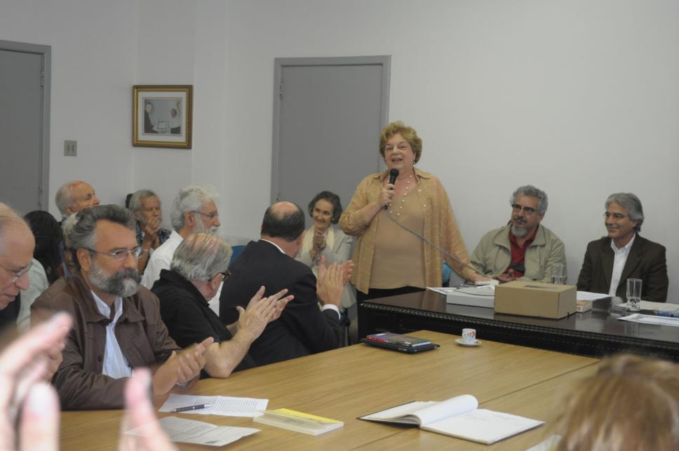 A profa. Margarida de Souza Neves (HIS) faz discurso de agradecimento.