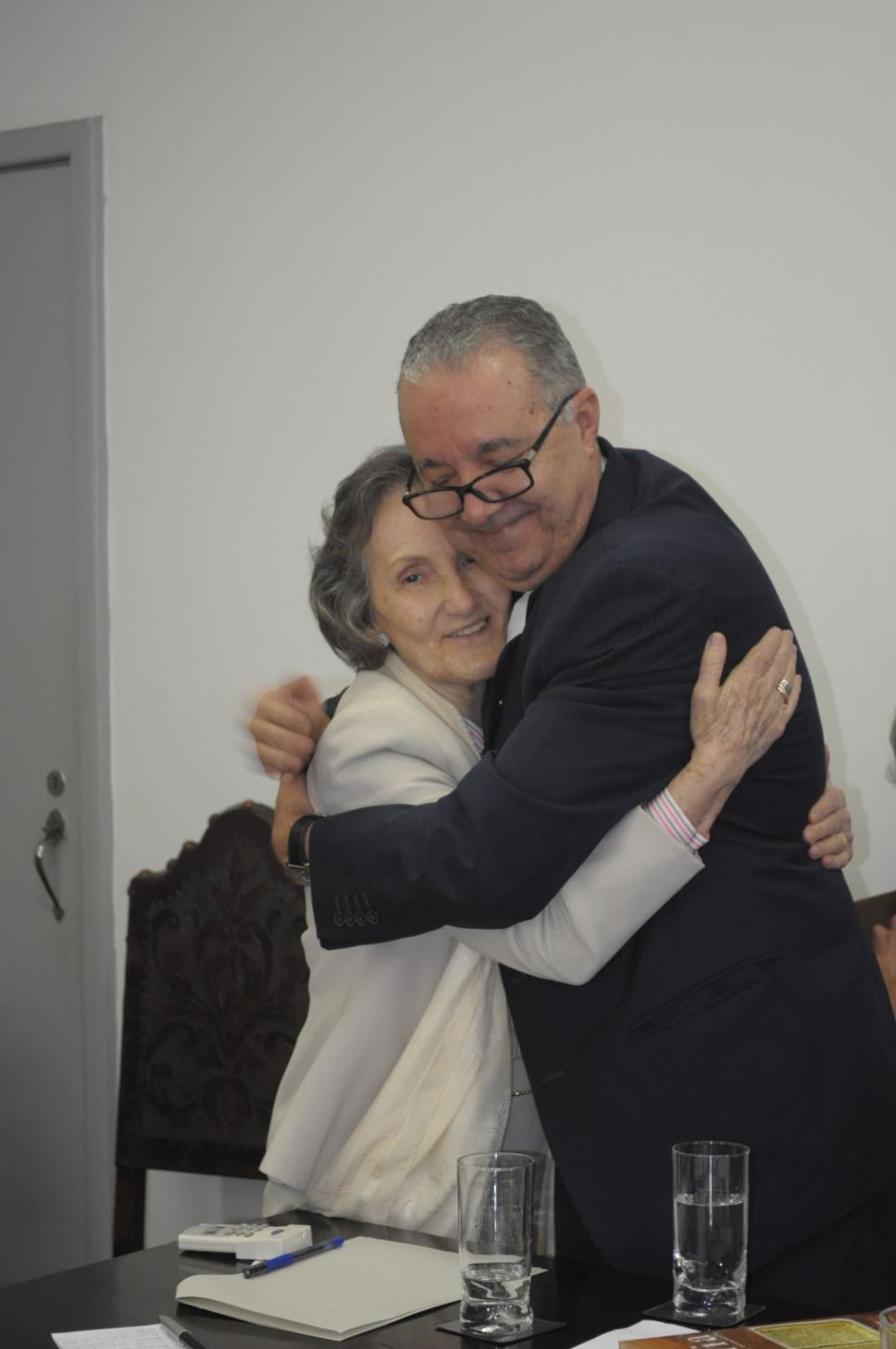 O reitor pe. Josafá S.J. abraça a profa. Lina Boff.