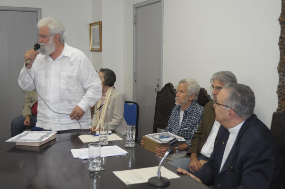 O teólogo Leonardo Boff, irmão da profa. Lina Boff, faz um discurso.