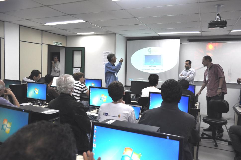 O Professor Luiz Fernando Gomes Soares oferece aula para programação do middleware Ginga Brasil, durante a jornada do Ginga Brasil II.
