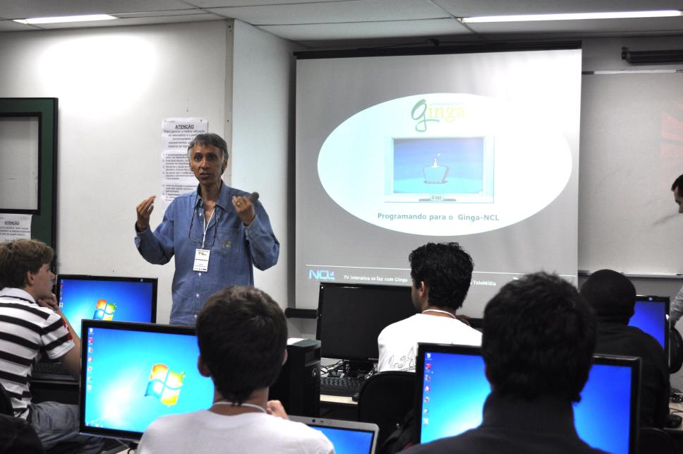 O Professor Luiz Fernando Gomes Soares oferece aula para programação do middleware Ginga Brasil, durante a jornada do Ginga Brasil II.