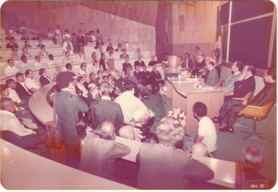 Cerimônia com a presença de convidados externos, inclusive religiosos e políticos.