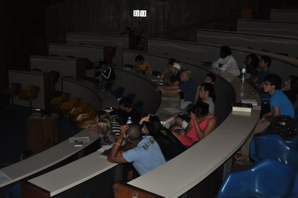 A palestra 'Do cafezal à ONU', do Projeto Portinari, oferecida por João Cândido Portinari aos alunos visitantes da PUC-Rio egressos da Universidade de Harvard.
