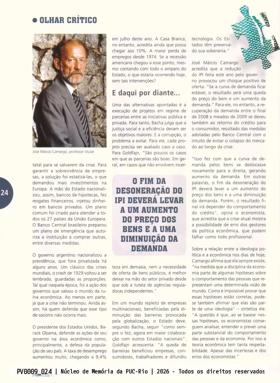 prof. José Márcio Camargo (ECO) (foto). Mencionados no texto, presidente Barack Obama, Edmar Bacha e Ilan Goldfjan.