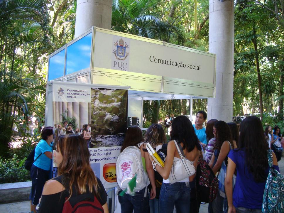 O estande de Comunicação Social divulga suas atividades e recebe os visitantes do 'PUC por um dia' 2010