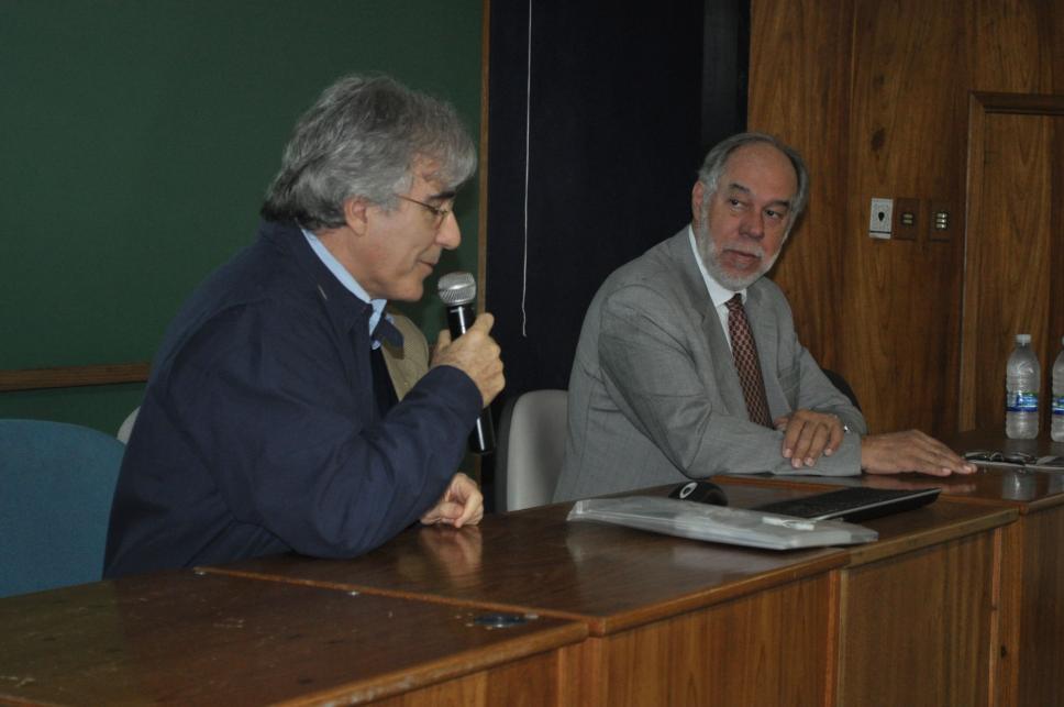 O vice-reitor acadêmico Professor José Bergmman introduz a palestra do presidente da CAPES, Professor Jorge Guimarães, que na sequência apresentou o Plano Nacional de Pós-Graduação 2011-2020 a representantes da administração central e outros professores da PUC-Rio.