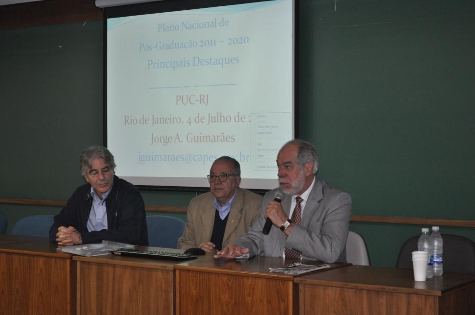 O presidente da CAPES, Professor Jorge Guimarães, apresenta o Plano Nacional de Pós-Graduação 2011-2020 a representantes da administração central e outros professores da PUC-Rio.