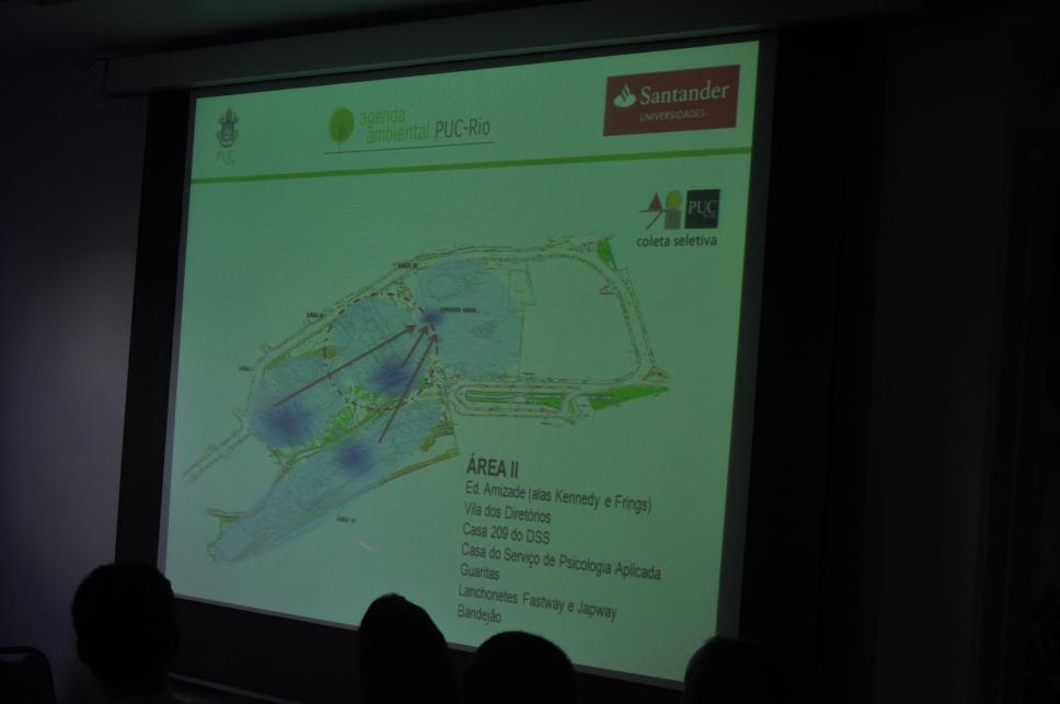 Apresentação da Agenda Ambiental PUC-Rio e Santander Universidades, realizada pelo prof. Luiz Felipe Guanaes Rego, diretor do NIMA. Exposição do sistema de coleta seletiva a ser implantado no campus da universidade.
