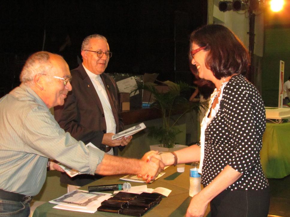 O prof. Augusto Sampaio entrega o diploma e cumprimenta Ana Einloft (VRAC).