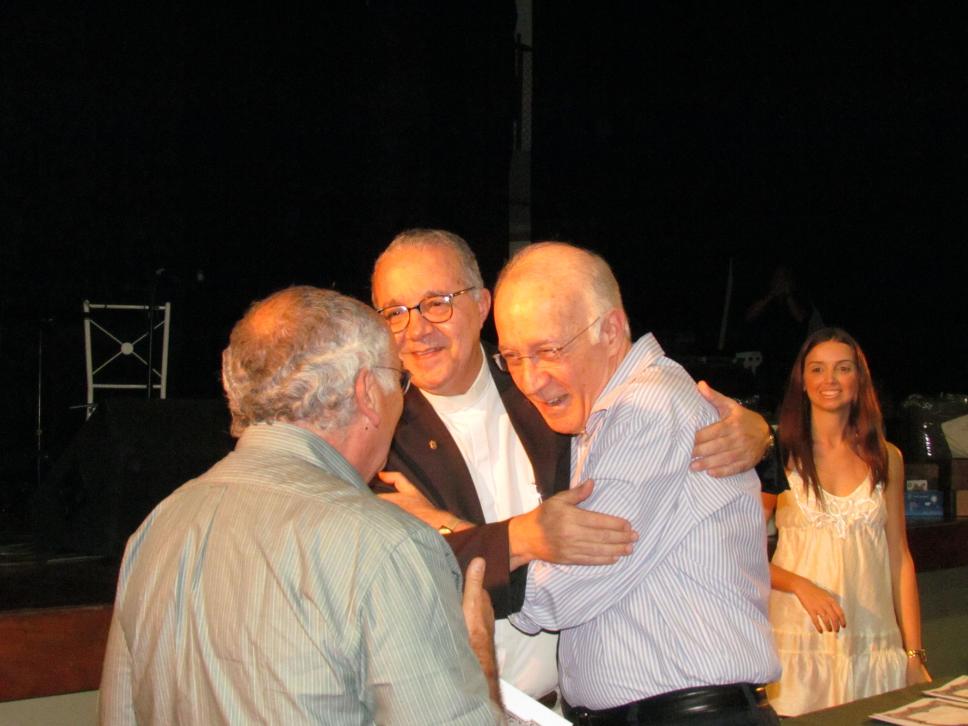O Professor César Romero Jacob, do Departamento de Comunicação Social, recebe, através do reitor Padre Josafá e do vice-reitor comunitário prof. Augusto Sampaio, o cumprimento e o agradecimento de toda a universidade pelos seus trinta e cinco anos de dedicação.