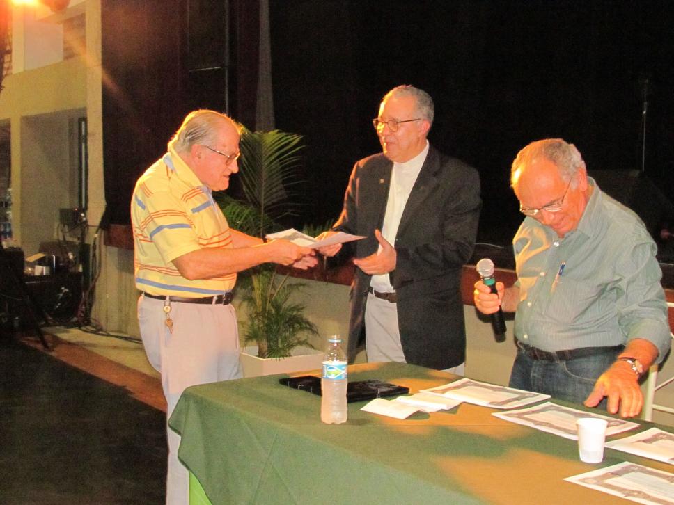 O Padre Hortal recebe, através do reitor Padre Josafá, o agradecimento de toda a universidade pelos vinte e cinco anos de dedicação a ela.
