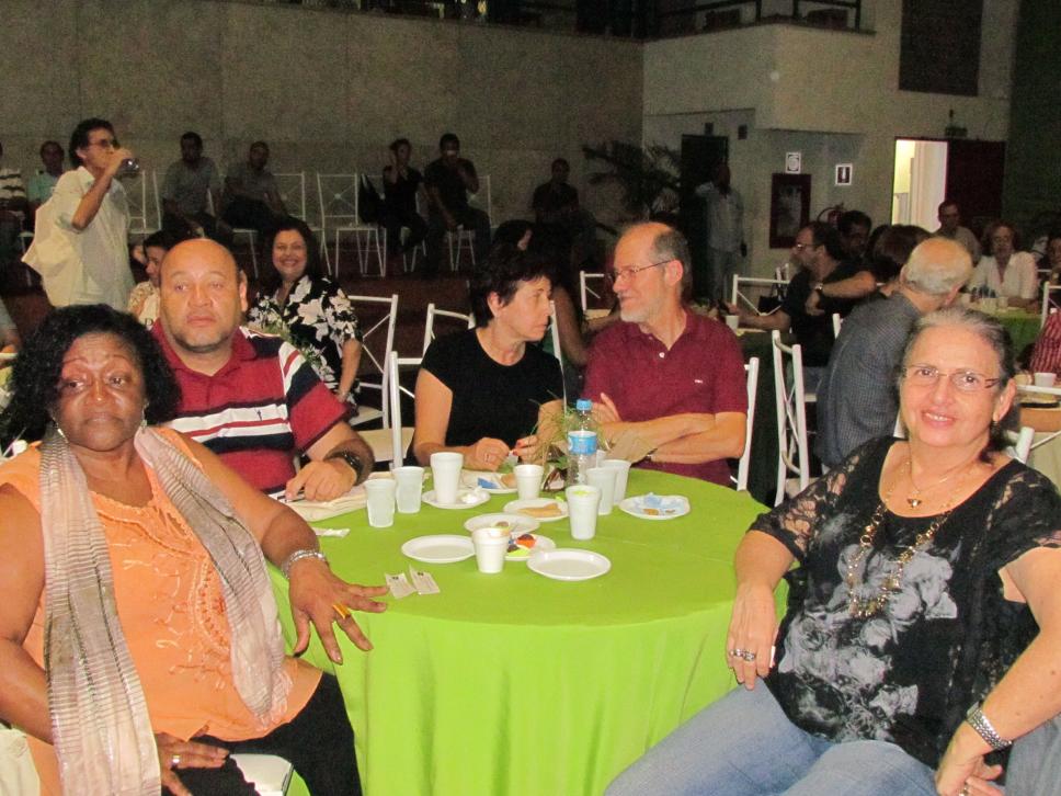 Convidados e homenageados conversam após a cerimônia.