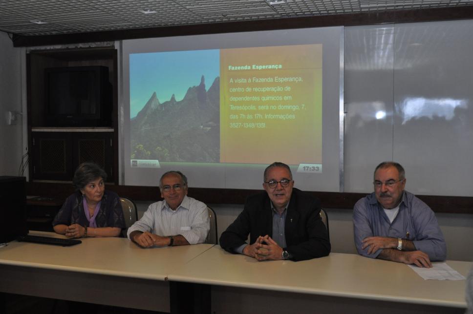 profa. Angeluccia Bernardes Habert (COM); vice-reitor comunitário prof. Augusto Luiz Duarte Lopes Sampaio (COM); reitor prof. pe. Josafá Carlos de Siqueira, S.J.; prof. Miguel Serpa Pereira (COM)