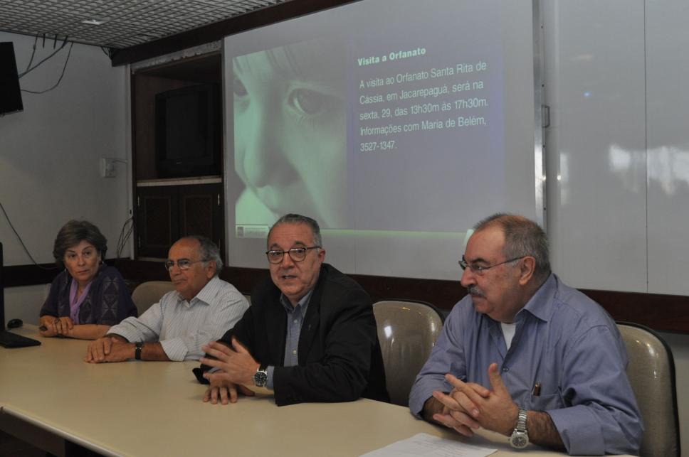 profa. Angeluccia Bernardes Habert (COM); vice-reitor comunitário prof. Augusto Luiz Duarte Lopes Sampaio (COM); reitor prof. pe. Josafá Carlos de Siqueira, S.J.; prof. Miguel Serpa Pereira (COM)
