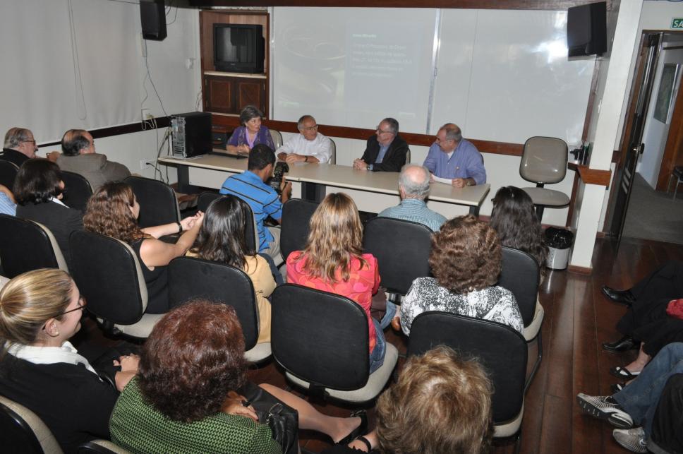 profa. Angeluccia Bernardes Habert (COM); vice-reitor comunitário prof. Augusto Luiz Duarte Lopes Sampaio (COM); reitor prof. pe. Josafá Carlos de Siqueira, S.J.; prof. Miguel Serpa Pereira (COM)