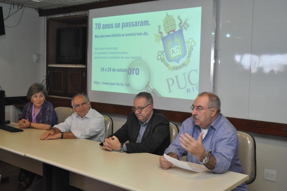 profa. Angeluccia Bernardes Habert (COM); vice-reitor comunitário prof. Augusto Luiz Duarte Lopes Sampaio (COM); reitor prof. pe. Josafá Carlos de Siqueira, S.J.; prof. Miguel Serpa Pereira (COM)