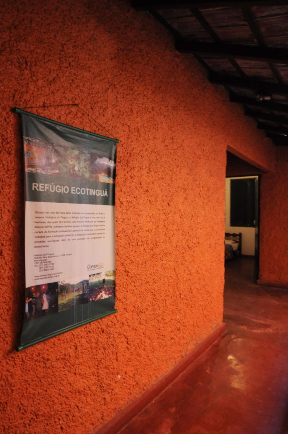 Banner sobre o Refúgio Ecotinguá na unidade da PUC-Rio no bairro do Tinguá, em Nova Iguaçu.
