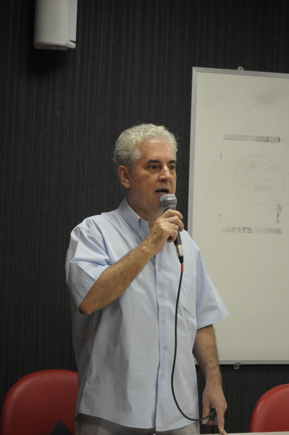 O Professor Leonel Aguiar, do Departamento de Comunicação da PUC-Rio, abrindo a palestra 'Novos Espaços e Novas Formas de Representação (para a Epistemologia da Comunicação?)', que o Professor Erick Felinto ministraria em seguida. A palestra fez parte do Seminário dos Alunos do Programa de Pós-Graduação em Comunicação Social da PUC-Rio (POSCOM VIII).