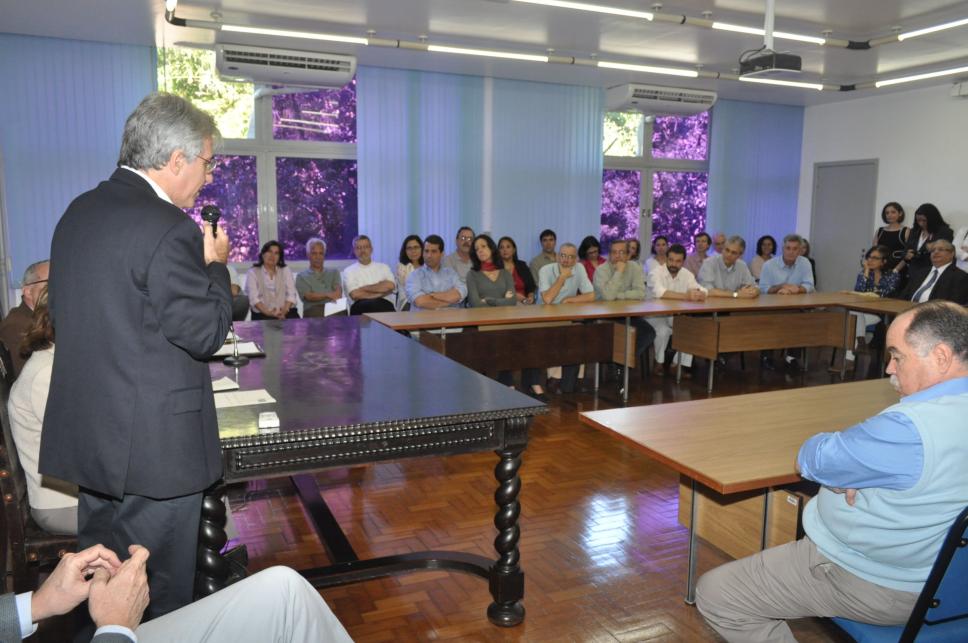 O vice-reitor acadêmico Professor Bergmann dá inicio à cerimônia de posse da Professora Daniela Vargas na função de coordenadora central de graduação da PUC-Rio, em agosto de 2011.