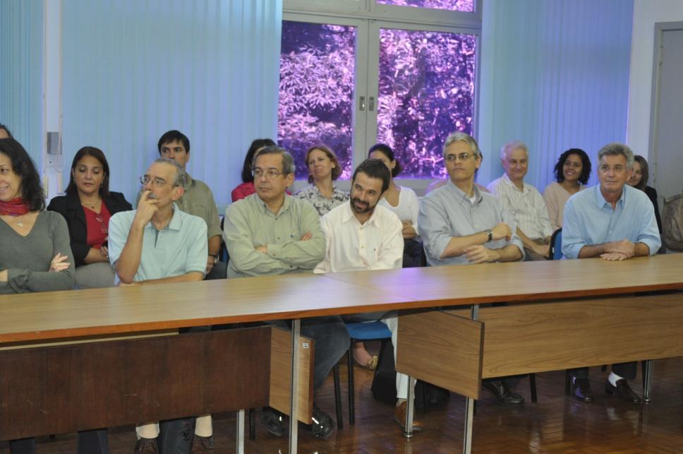 Professores, funcionários e representantes da administração central da PUC-Rio assitem à cerimônia de posse da Professora Daniela Vargas na função de coordenadora central de graduação da PUC-Rio, em agosto de 2011.