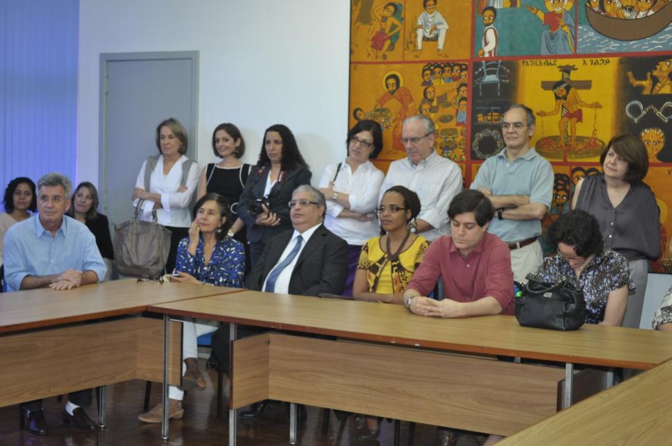 Professores, funcionários e representantes da administração central da PUC-Rio assitem à cerimônia de posse da Professora Daniela Vargas na função de coordenadora central de graduação da PUC-Rio, em agosto de 2011.