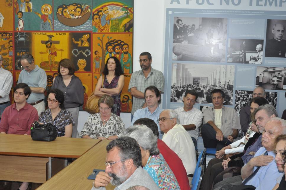 Professores, funcionários e representantes da administração central da PUC-Rio assitem à cerimônia de posse da Professora Daniela Vargas na função de coordenadora central de graduação da PUC-Rio, em agosto de 2011.
