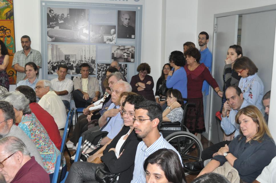 Professores, funcionários e representantes da administração central da PUC-Rio assitem à cerimônia de posse da Professora Daniela Vargas na função de coordenadora central de graduação da PUC-Rio, em agosto de 2011.