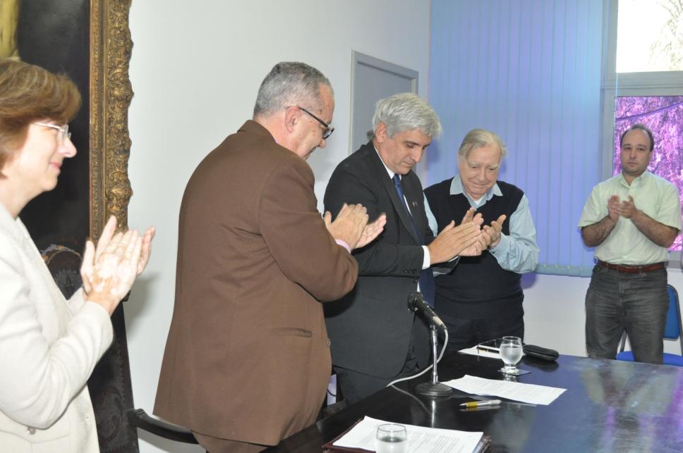 O Professor Alfredo Jefferson é aplaudido de pé após sua fala de despedida na cerimônia de posse da Professora Daniela Vargas, que o substituiu na função de coordenador central de graduação.