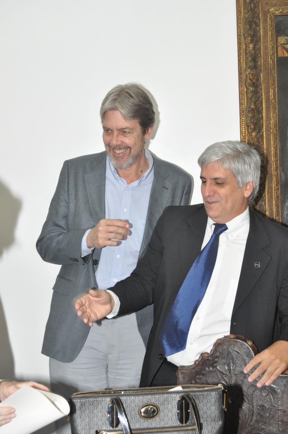 O Professor Ricardo Tanscheit e o Professor Alfredo Jefferson, na cerimônia de posse da Professora Daniela Vargas na função de coordenadora central de graduação, que até então cabia a este último.