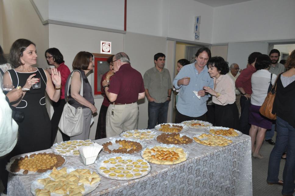 Confraternização após a cerimônia de posse da Professora Daniela Vargas no cargo de coordenadora central de graduação.