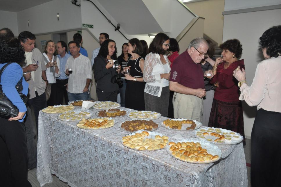 Confraternização após a cerimônia de posse da Professora Daniela Vargas no cargo de coordenadora central de graduação.