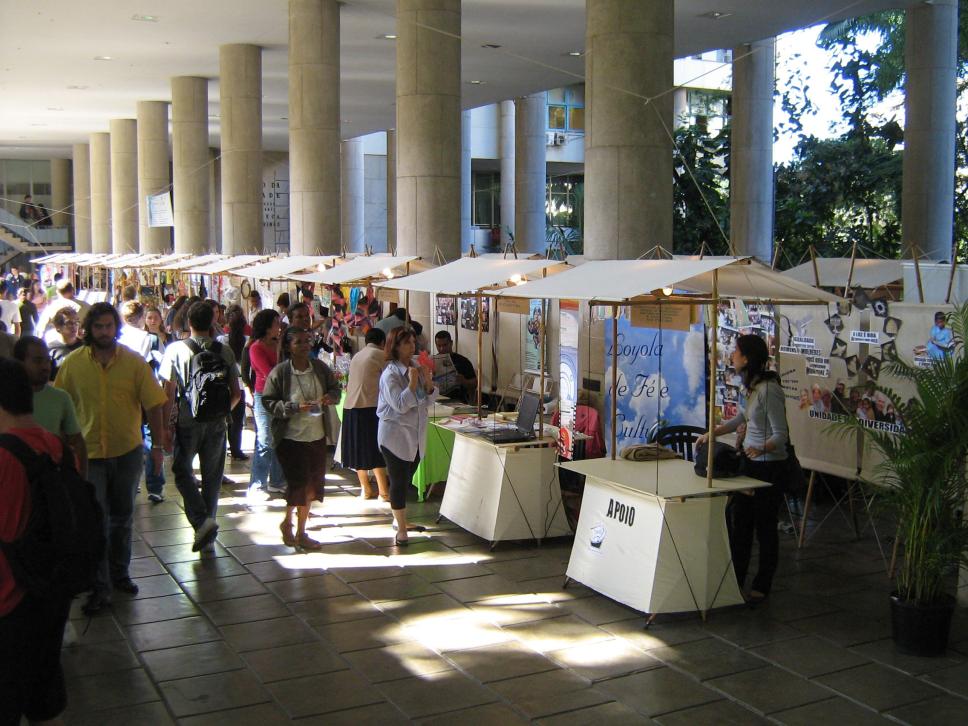 A feira montada nos pilotis durante a jornada da XIV Semana do Meio-Ambiente, em junho de 2008