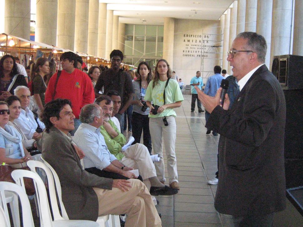 O reitor Padre Josafá participa das apresentações da jornada da XIV Semana do Meio-Ambiente, em junho de 2008.