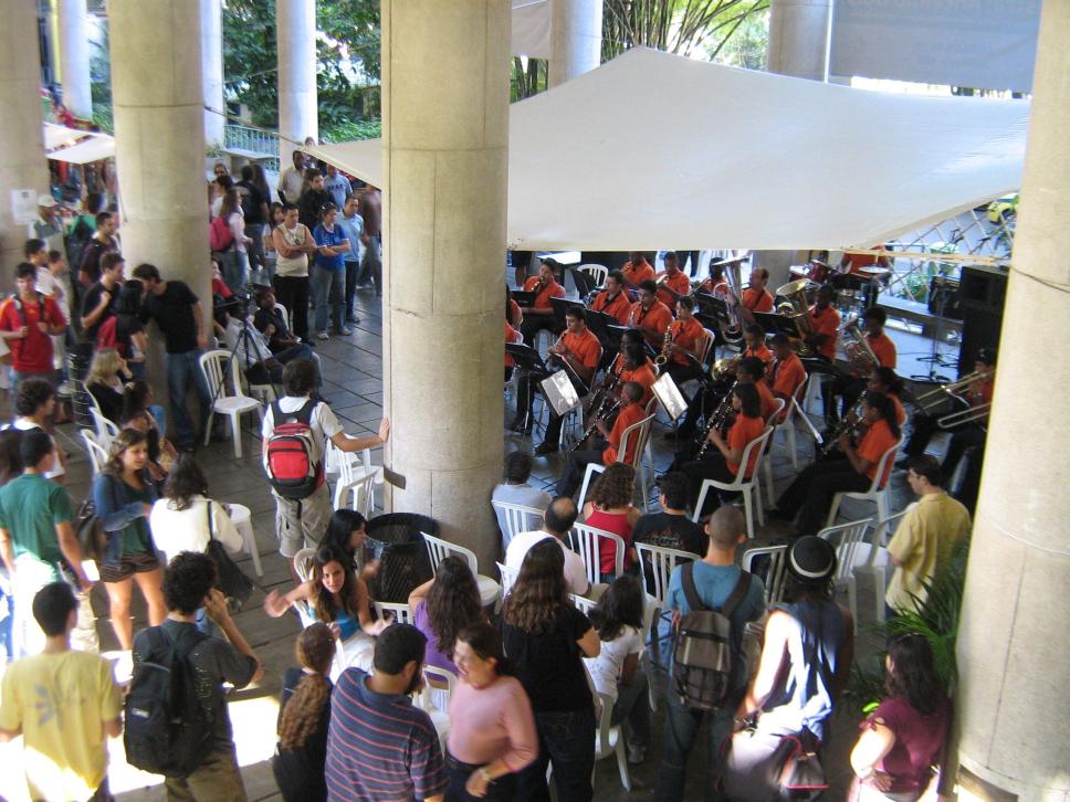 Apresentação de conjunto de jovens nos pilotis, durante a XIV Semana do Meio-Ambiente, em junho de 2008
