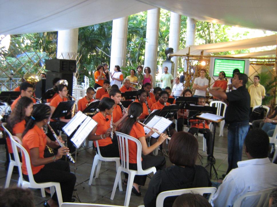 Apresentação de conjunto de jovens nos pilotis, durante a XIV Semana do Meio-Ambiente, em junho de 2008